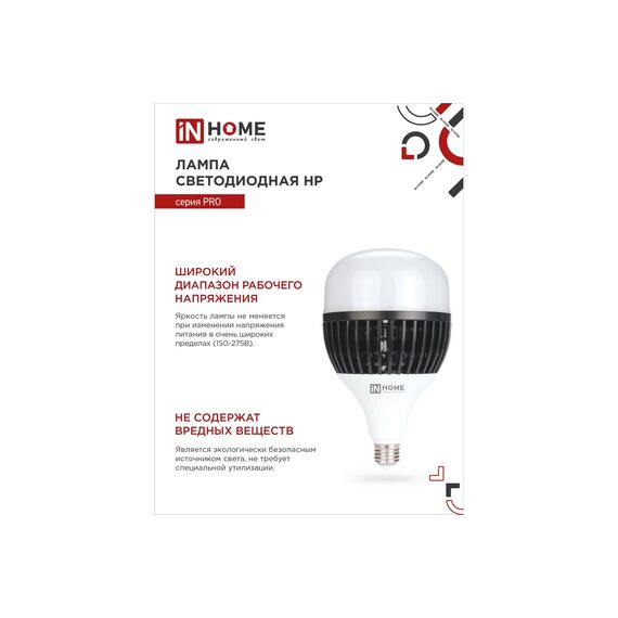 Технические характеристики IN HOME LED-HP-PRO 150Вт 230В E27 с адаптером Е40 6500К 14250Лм 4690612035703