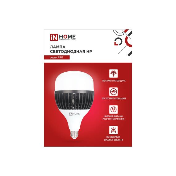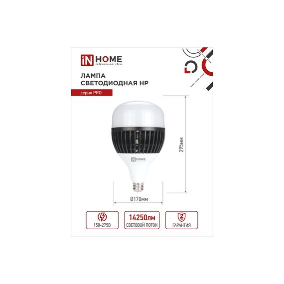 Светодиодная лампа IN HOME LED-HP-PRO 150Вт 230В E27 с адаптером Е40 6500К 14250Лм 4690612035703 применяется для общего и локального освещения производственных и общественных помещений.