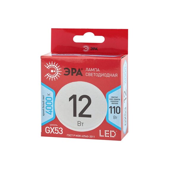 Лампочка Эра LED GX-12W-840-GX53 R (Б0048013) (диод, таблетка, 12Вт, нейтр, GX53) (10/100/4200)