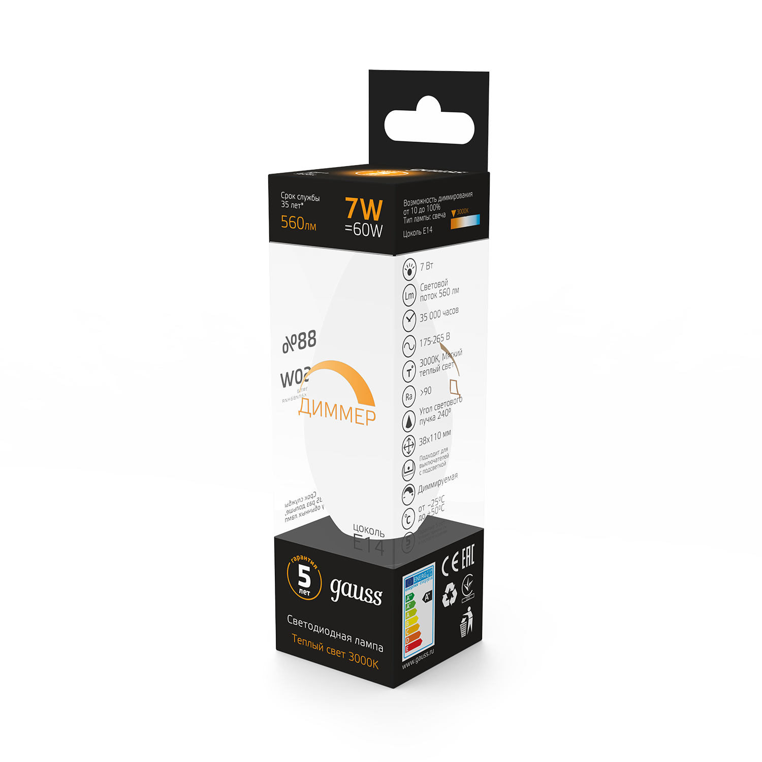 Лампочка Gauss 103101107-D Свеча-dim E14 7W (10шт)