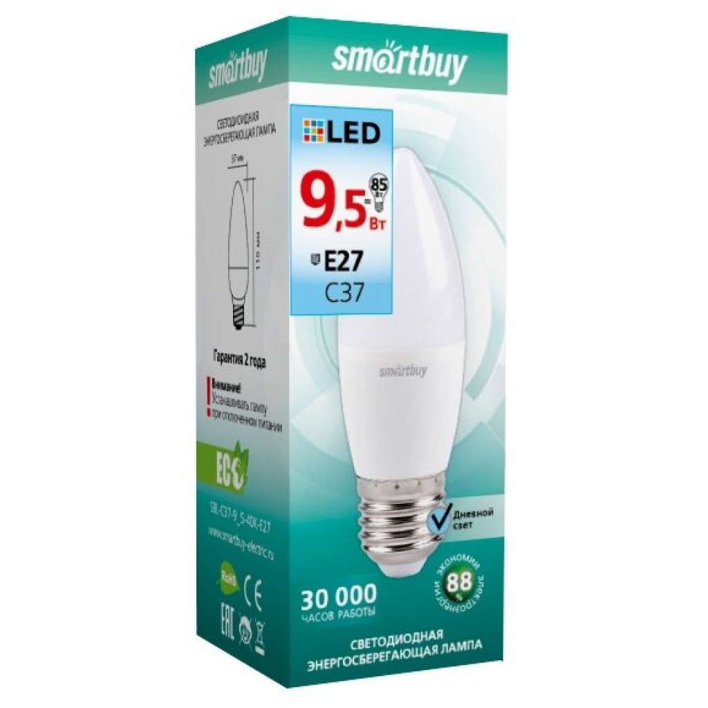 Светодиодная лампа Smartbuy C37-9,5W/4000/Е27