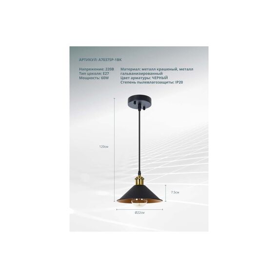 Подвесной светильник ARTE LAMP cappello A7037SP-1BK