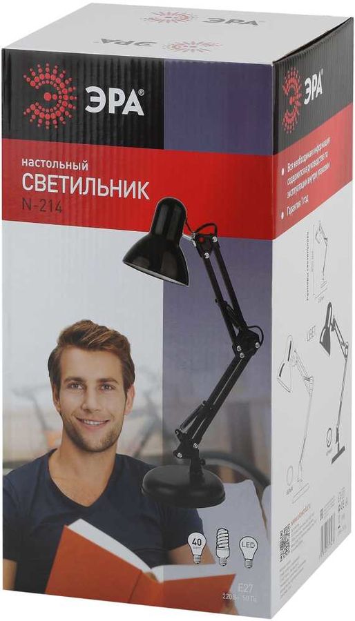 Высокая надежность и долговечность светильника настольного ЭРА N-214-E27-40W-BK обеспечивается применением качественных материалов. Прибор изготовлен из металла, при необходимости его можно сложить и спрятать в шкаф, он не займет много места. Патрон Е27 рассчитан под обычную лампу накаливания, но при необходимости можно заменить на любую другую с подходящим цоколем.
