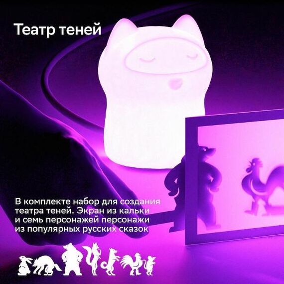 Управление со смартфона. Создает атмосферу. Театр теней в комплекте. Дополняет интерьер детской. Голосовой помощник Салют.