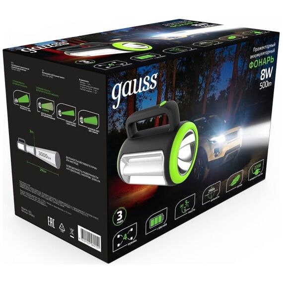 Дальность луча от самого мощного фонаря составляет 500 метров. Все модели прожекторных фонарей обладают современным дизайном корпуса и покрытием «Soft touch» - без эффекта скольжения в руках и приятным тактильным ощущением. Прожекторный фонарь Gauss модель GFL603 8W 400lm lead acid 1500mAh диммируемый LED 1/10/20 GF603 хорошо подойдет для использования на даче, для альпинизма, поисково-спасательных работ, а также для кемпинга или активного отдыха за городом. Оснащен Li-ion аккумулятором с большой емкостью, чтобы обеспечить непрерывную работу даже в самых критичных моментах.