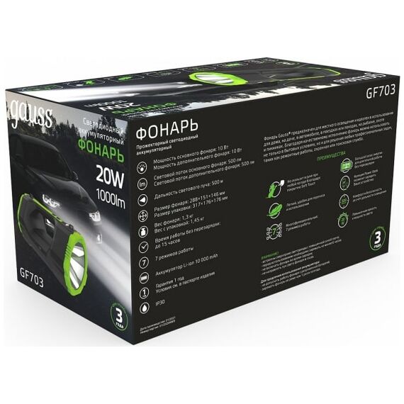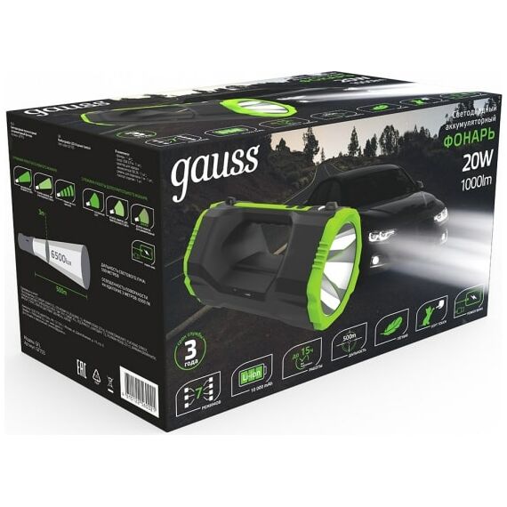 Технические характеристики Gauss GFL703 20W 1000lm Li-ion 10000mAh диммируемый LED GF703
