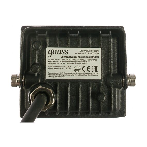 Прожектор уличный Gauss Elementary 613100310P светодиодный 10Вт корп.мет.черный