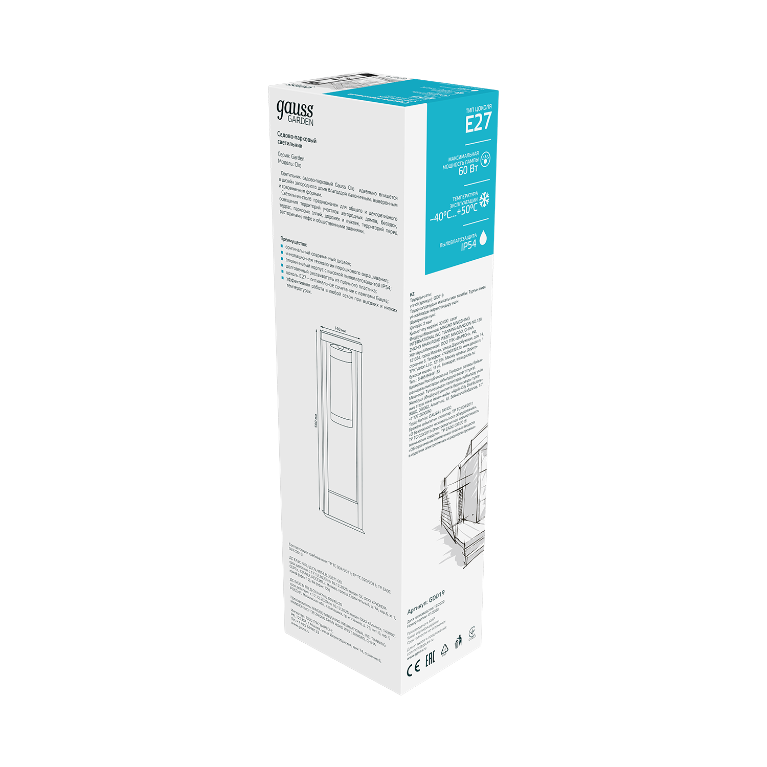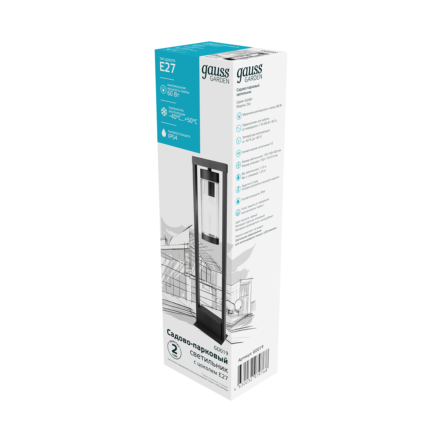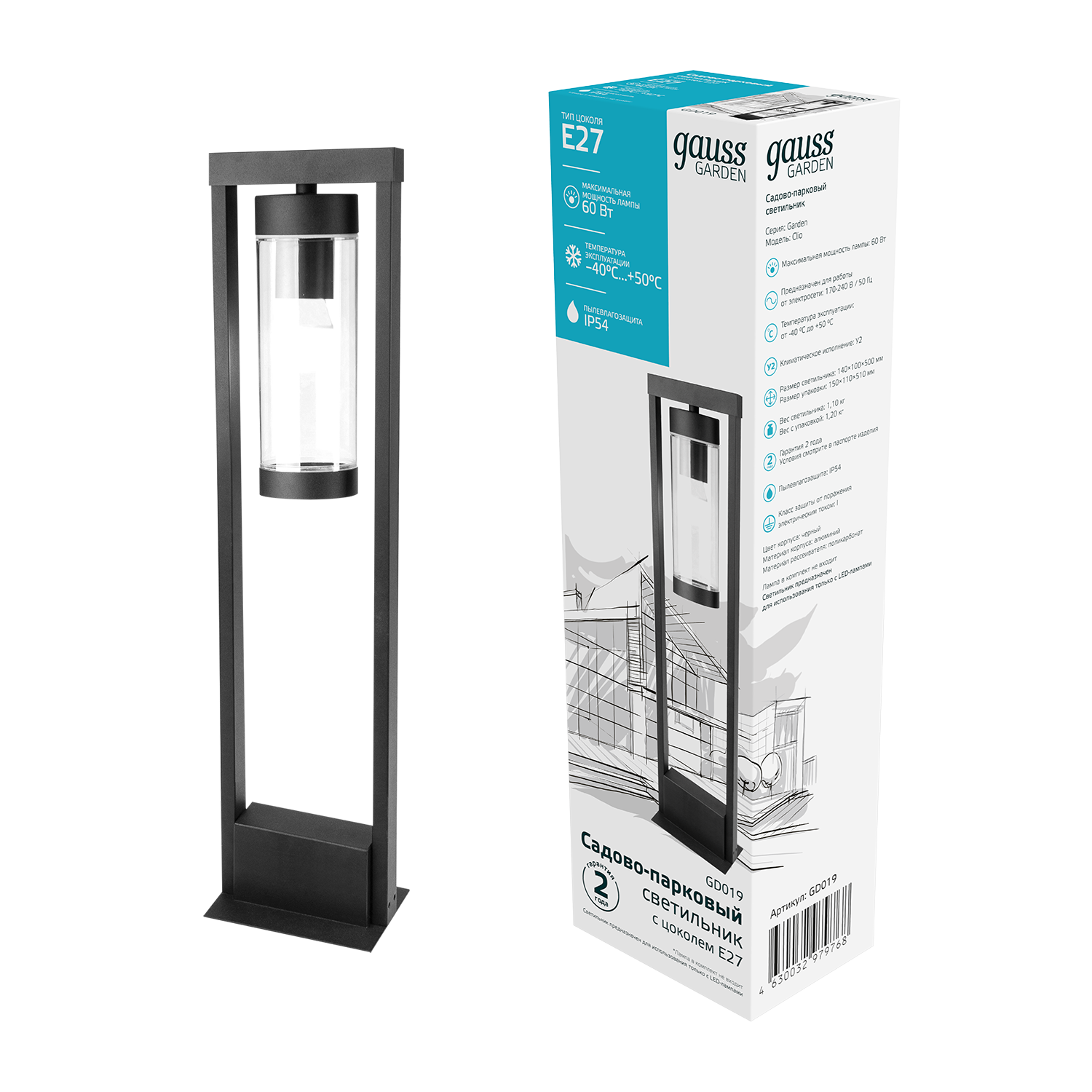Светильник садово-парковый Gauss GD019 60Вт черный