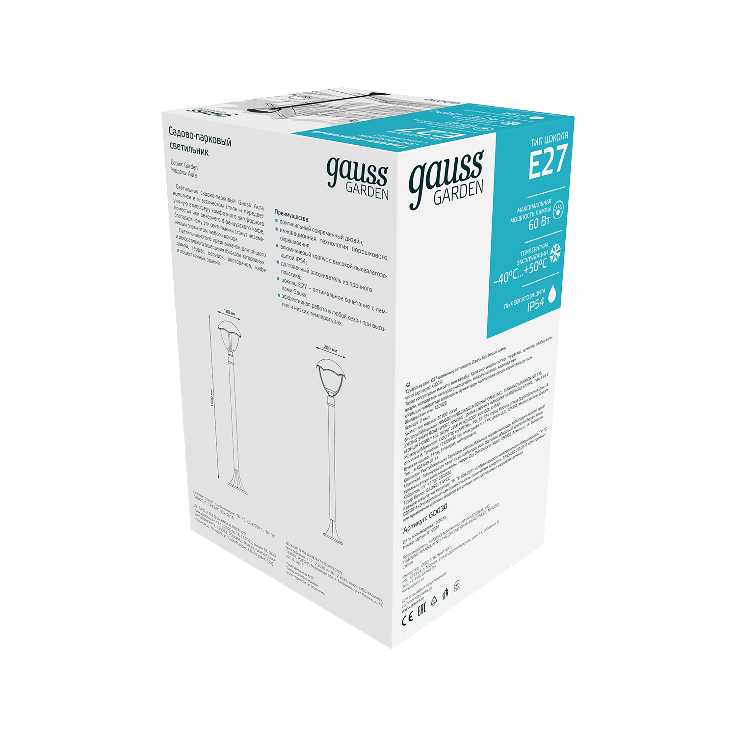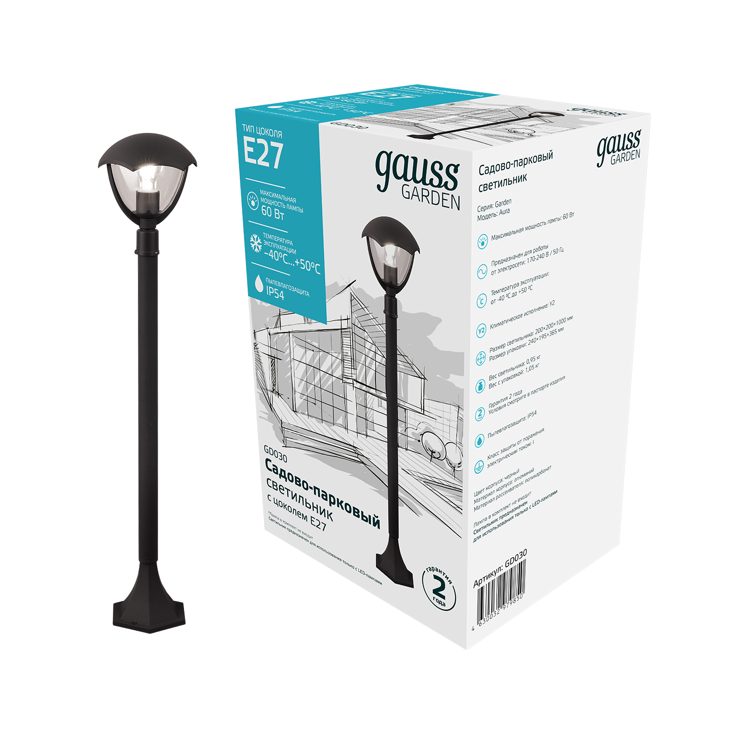 Светильник садово-парковый Gauss Aura столб высотой 1м - это отличное решение для освещения парковых дорожек, скамеек и садовых кабинетов для подсвечивания вечерних чаепитий. Они создают завершенность ландшафтного образа Старинный парк и хорошо сочетаются с другими настенными и постаментными светильниками Gauss. У него такой же алюминиевый корпус покрытый черной антикоррозийной порошковой краской, удобный Е27 патрон, с максимальной мощностью лампы 60w и рабочей температурой от -40 до +50°С. Способ установки лампы - сверху по типу торшер.