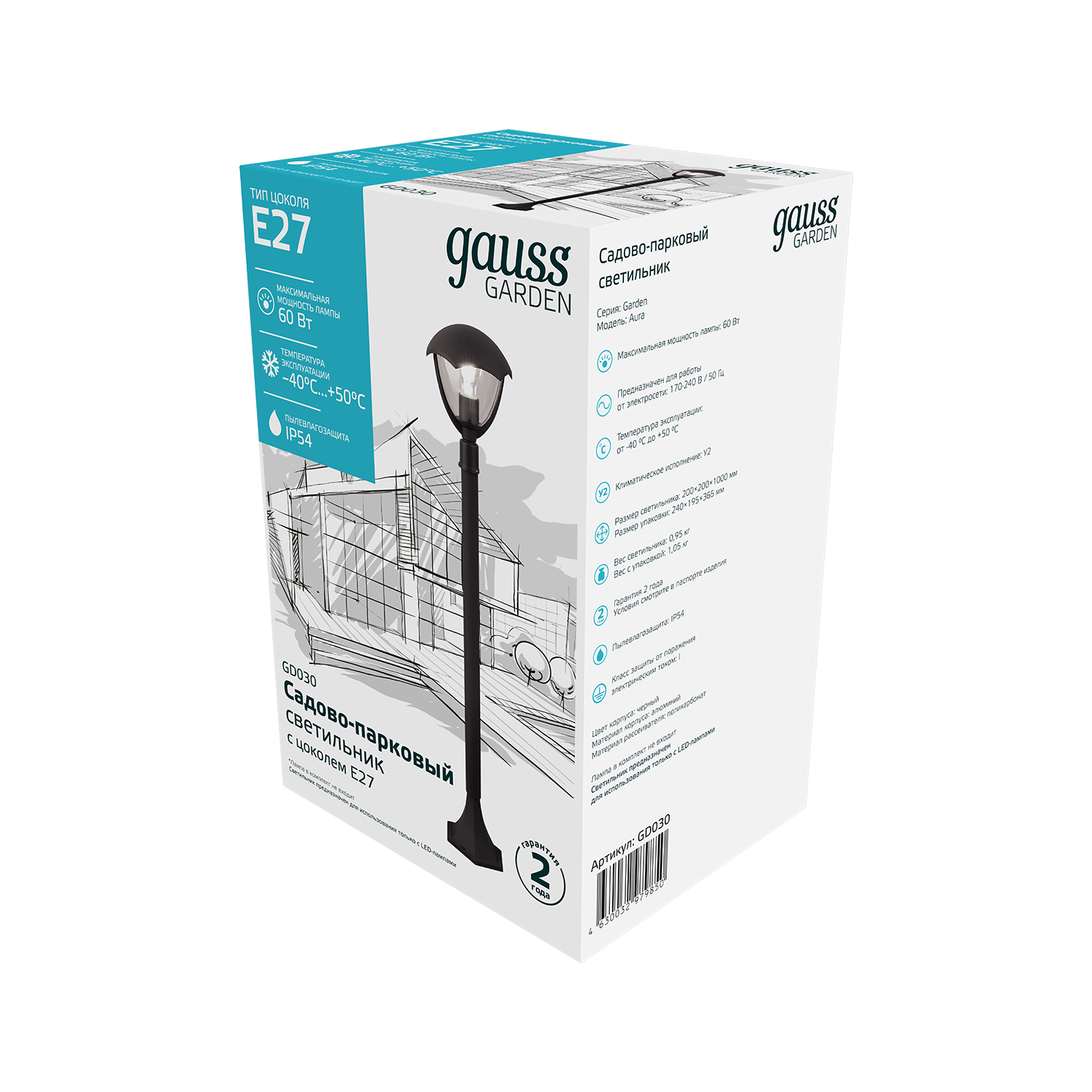 Светильник садово-парковый Gauss GD030 60Вт ламп.1шт черный