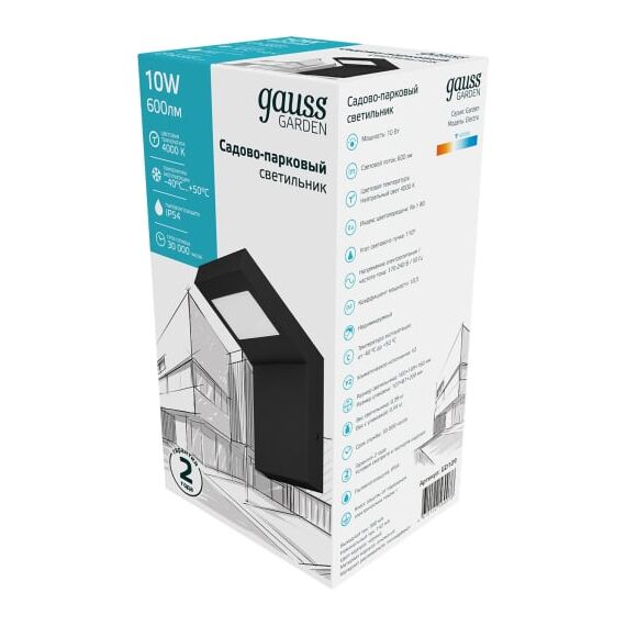 Садово-парковый светильник Gauss LED Electra, 10W, 600Lm, 4000K, 170-240V / 50Hz, GD109 применяется в общем и декоративном освещении территорий загородных домов, террас, беседок, дорожек, лужаек, подходит для освещения фасадов зданий, загородных домов, террас, ресторанов, кафе и других строений. Данному светильнику присущи лаконичные и выверенные формы. Выполнен в современном технологичном стиле и идеально впишется в любой интерьер. Влагонепроницаемый корпус светильника не подвержен коррозии благодаря инновационной технологии порошкового окрашивания. Алюминиевый корпус в сочетании с рассеивателем из поликарбоната обеспечивают высокую пыле-влагозащиту, что дает возможность использовать светильник в любой сезон при высоких и низких температурах.