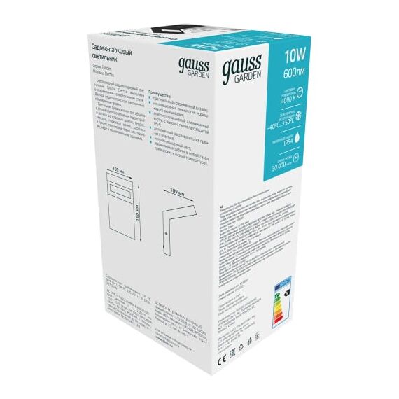 Садово-парковый светильник Gauss LED Electra, 10W, 600Lm, 4000K, 170-240V / 50Hz, GD109 выполнен в оригинальном современном дизайне.