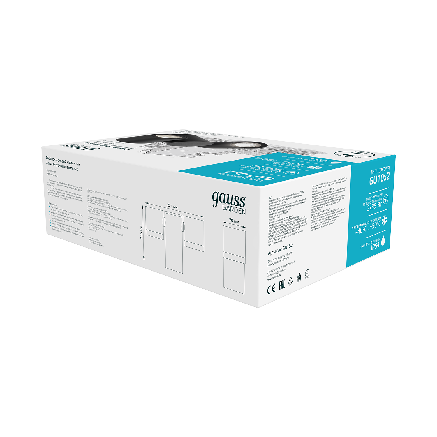 Светильник садово-парковый Gauss Sonata архитектурный настенный с двумя спотами на коротком столбике - это симпатичный и практичный элемент вашего двора или сада. Он прекрасно впишется в любой современный экстерьер фасадов жилых или коммерческих зданий. У него антикоррозийное порошковое напыление на алюминиевом корпусе и закаленное стекло рассеивателя. Допустимая мощность не должна превышать 60Вт( 2по 35вт), IP 54 - работа на открытых пространствах, а диапазон максимальных температур от -40 до +50°С позволяет освещать ваше пространство даже в экстремальных условиях.