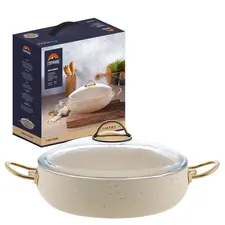 Основные характеристики Тип товара жаровня Крышка в комплекте Да Размеры Объем, л 4.8 Диаметр, см 280 Материалы и цвет Материал казана алюминий Материал крышки стекло Материал ручек металл Внутреннее покрытие гранитное Модель антипригарного покрытия granite Цвет коричневый...