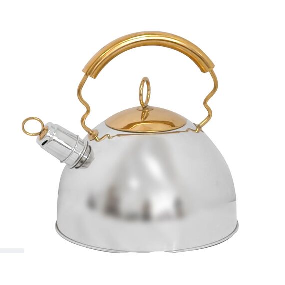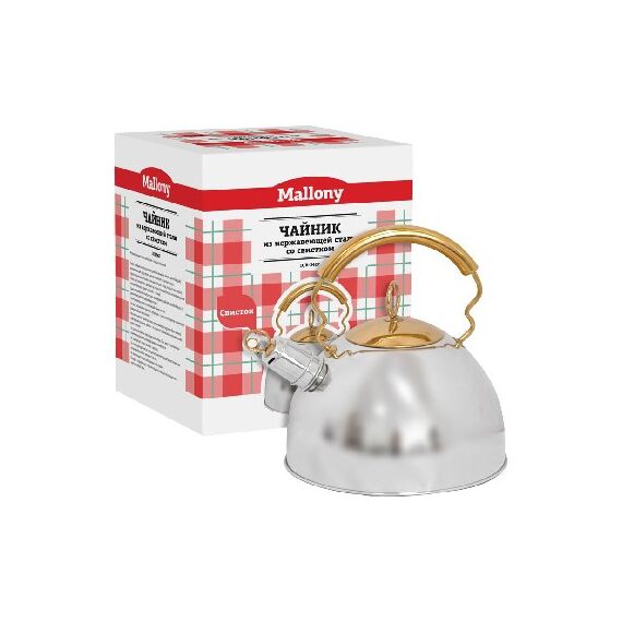 Чайник из нержавеющей стали со свистком Объём: 2,5 литра Материал: нержавеющая сталь. Капсульное дно. Зеркальная полировка корпуса Со свистком Подходит для всех типов плит. Не рекомендуется мыть в посудомоечной машине. Упаковка: инд цветная коробка.
