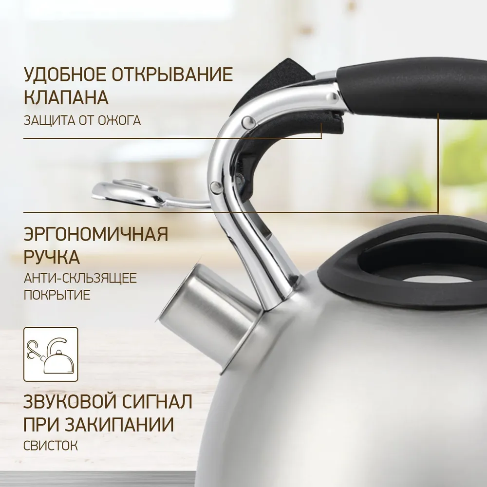 Двойные стенки, Ненагревающиеся ручки, Со свистком