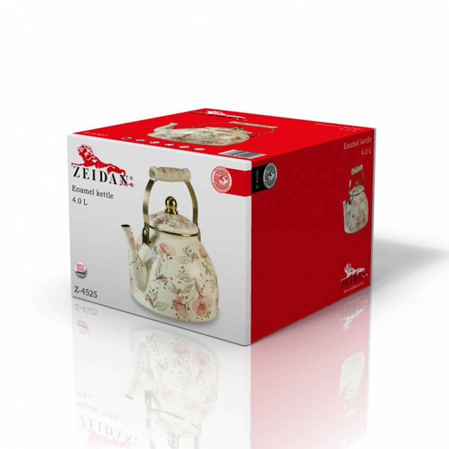 Эмалированный чайник ZEIDAN Flowers Z-4525 — это не только функциональный, но и стильный элемент вашей кухни. С объемом 4 литра он идеально подходит для приготовления чая или других горячих напитков для всей семьи или компании друзей. Чайник выполнен с комбинированной ручкой "под золото", что придает ему элегантный и роскошный вид, а внутреннее эмалированное покрытие обеспечивает защиту от коррозии и легкость в уходе. Наружное покрытие с красивым рисунком добавляет изюминку и делает этот чайник настоящим украшением вашей кухни. ZEIDAN Flowers также подходит для индукционных плит, что делает его универсальным выбором для любого типа кухонной техники. Подарочная упаковка делает его отличным вариантом для подарка на различные праздники или торжества.