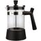Корпус изготовлен из прочной нержавеющей стали и прозрачного пластика. В нём размещён пресс-ситечко, с помощью которого легко можно отжать заварку, чтобы чаинки не попали в чашку. Термоизолированная ручка позволяет безопасно поднимать эту модель и переносить её с места на место.