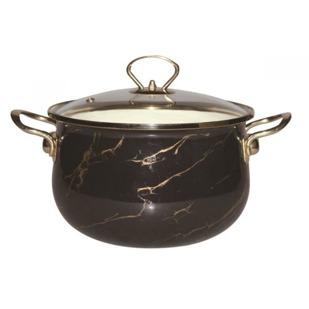 Кастрюля 3 л эмалированная со стекл. кр., ручка золото; цвет: чёрный мрамор