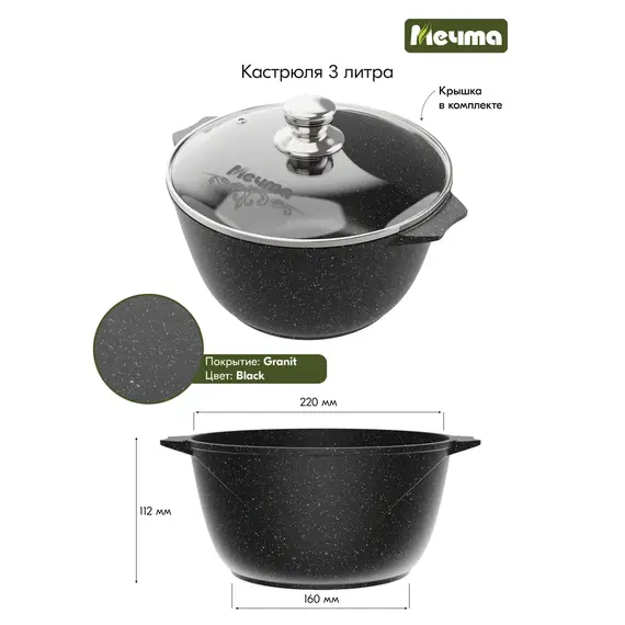 Кастрюля Мечта Гранит Black M43802 3л
