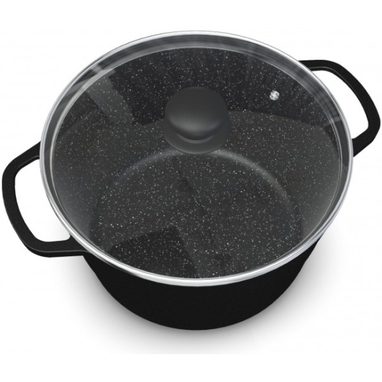 Качественное антипригарное покрытие с эффектом натурального камня «Черный гранит» позволяет избежать пригорания продуктов даже без использования масла. Покрытие на водно-кремниевой основе не содержит PFOA (перфтороктановую кислоту), безопасно для контакта с пищевыми продуктами, а также в производстве и для окружающей среды.