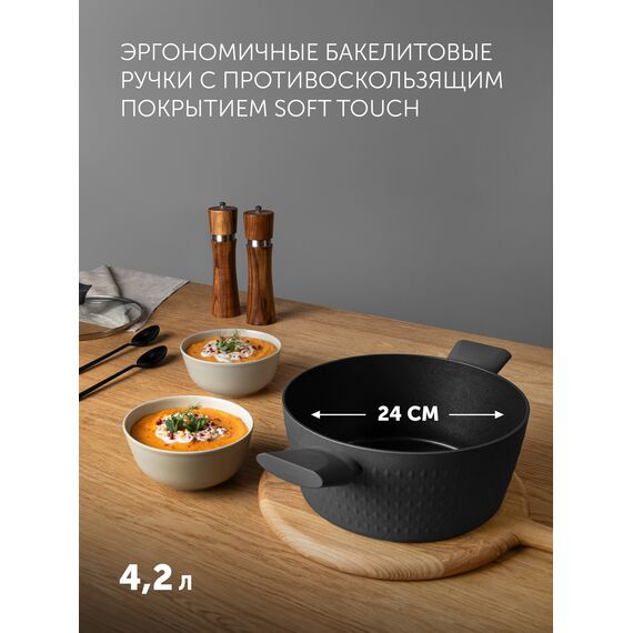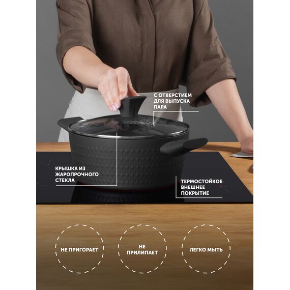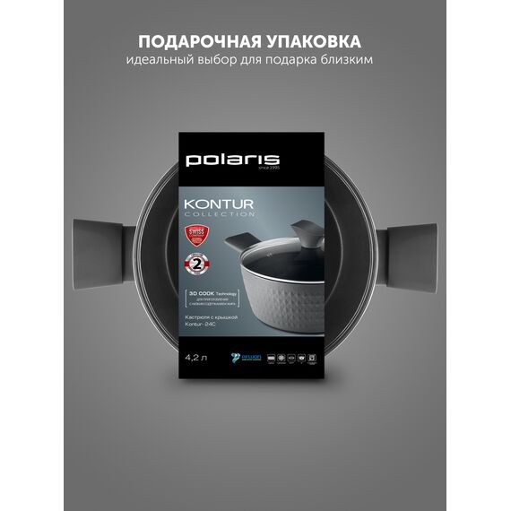 Кастрюля Polaris Kontur 24C (015082) 4.2л с крышкой черный