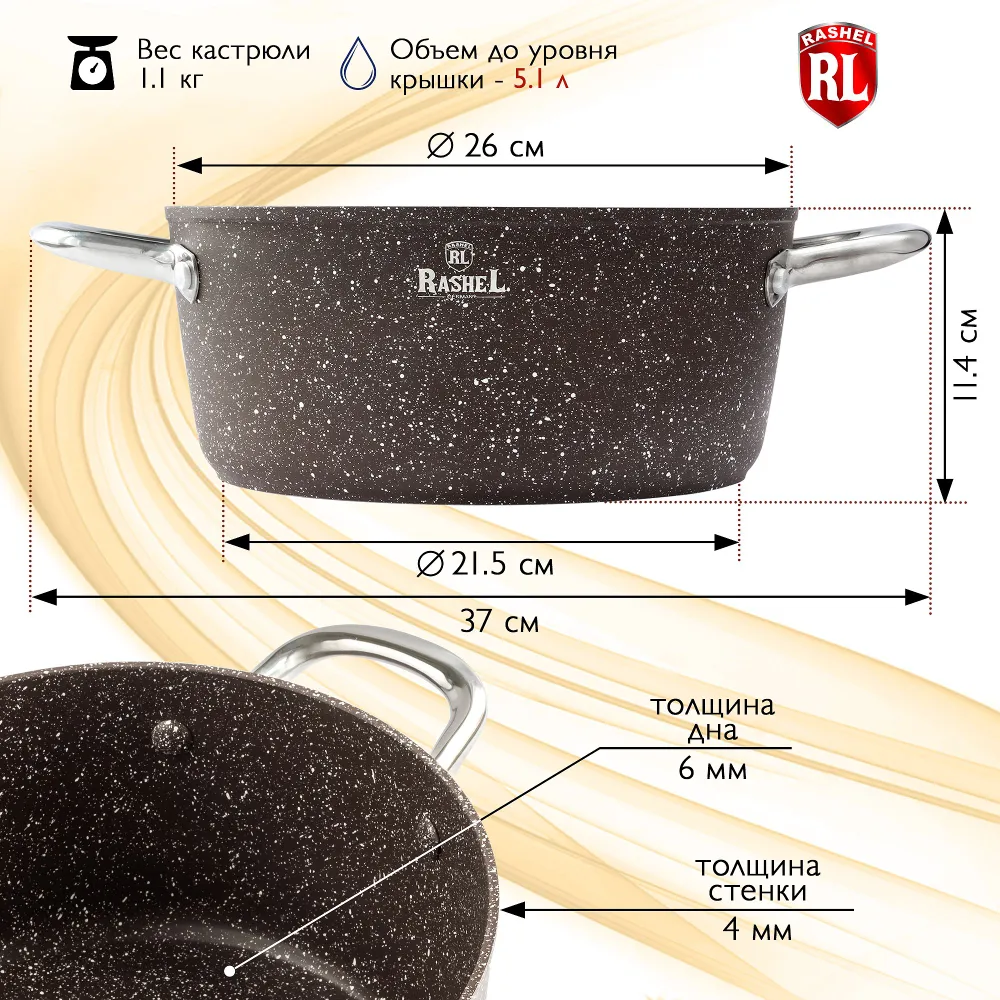 Кастрюля Rashel R-24450 Титан&Гранит 5л