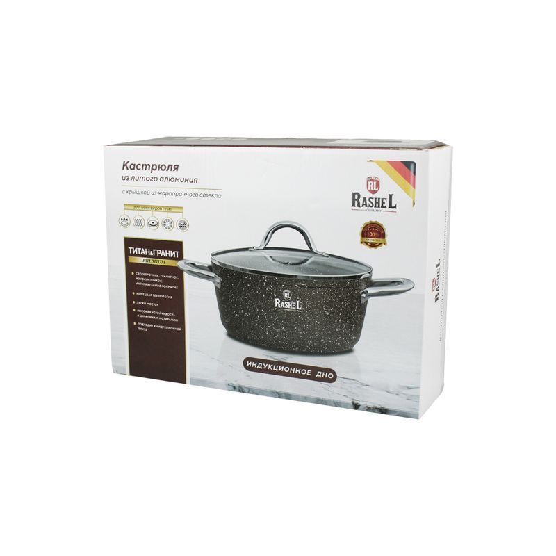 Кастрюля Rashel R-26630 Титан&Гранит 3л/22см коричневый
