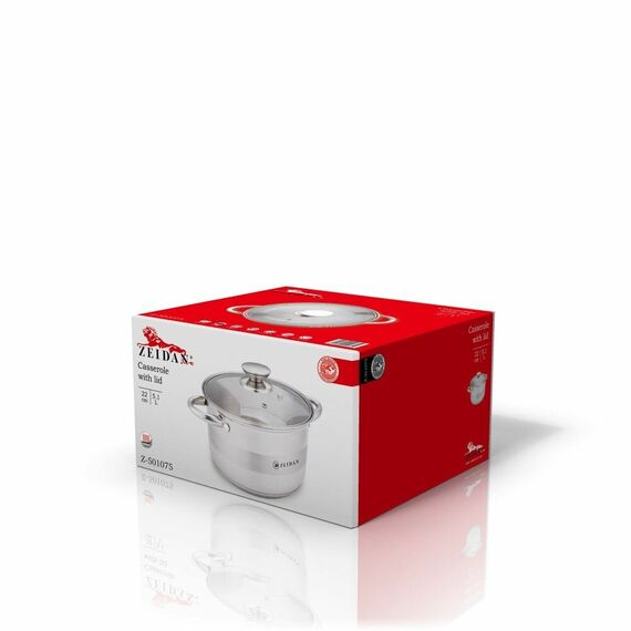 Посуда комплектуется стеклянной крышкой с отверстием для выхода пара, выполненная из высококачественного термостойкого стекла, идеально прилегающая к краям посуды и предотвращающая проливание жидкости.