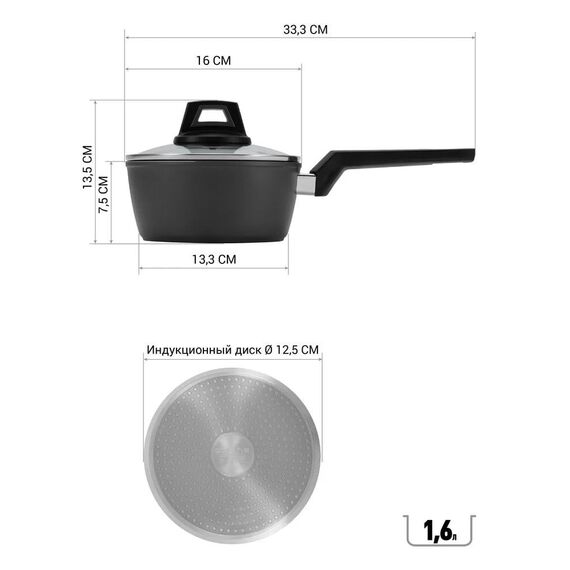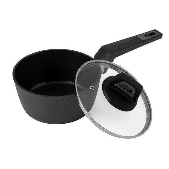 Отличительной особенностью данного ковша является его прозрачная крышка из жаропрочного стекла с отверстием для выпуска пара. Она позволяет контролировать процесс приготовления, сохраняя аромат и питательные вещества внутри ковша. Эргономичные бакелитовые ручки с покрытием soft touch обеспечивают удобство и комфорт при использовании ковша.