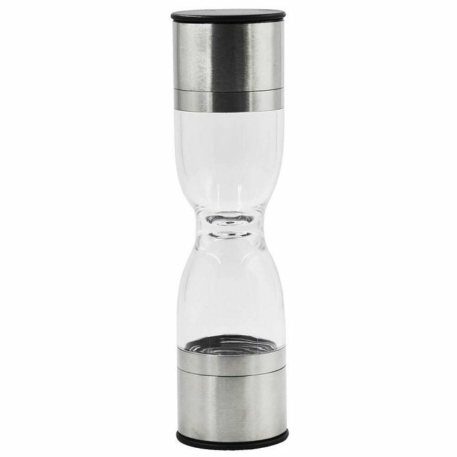 Мельница для перца и соли 22х6 см, высококачественная нержавеющая сталь + акрил,, механизм для измельчения - высококачественная керамика, подарочная упаковка. Мельница для специй 2 в 1 - это измельчитель для специй, как известно аромат перца и приправ раскрывается именно в момент помола. Лаконичный стильный дизайн мельницы для специй позволит ей вписаться в интерьер любой кухни. Корпус ручной мельницы эргономичен и выполнен из высококачественной гладкой стали, которая идеально держится в руке без скольжения. Перечница механическая имеет керамические жернова, что делает срок службы долгосрочным. Керамический измельчитель, заменит несколько ручных солонок и перечниц. Кухонный помощник с лёгкостью перемалывает перец горошком, крупную морскую соль и другие приправы. Мельница для специй придаст любому блюду невероятный вкус. Ведь в отличие от фасованных, магазинных приправ свежемолотые специи сохраняют присущие им аромат и пользу.