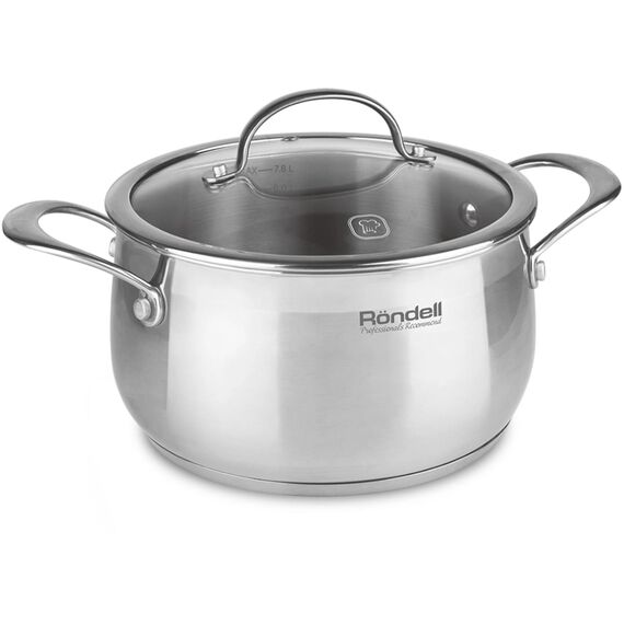 Материал: высококачественная нержавеющая сталь 18/10. Толщина стенок: 0,5 мм. Толщина дна: 5,0 мм. Аксессуары: литые, из нержавеющей стали. Преимущества: эргономичная форма ручек равномерный прогрев изделия; округлая форма корпуса; высокие стенки корпуса – большой литраж посуды.