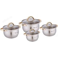 Описание Набор посуды 8 предметов (серия Dorian) Ковш с крышкой 16см/1,9л Кастрюля с крышкой 18см/2,9л Кастрюля с крышкой 20см/3,8л Кастрюля с крышкой 24см/6,5л * Высококачественная нержавеющая сталь * Многослойное термоаккумулирующее дно с прослойкой алюминия для быстрого нагрева и...