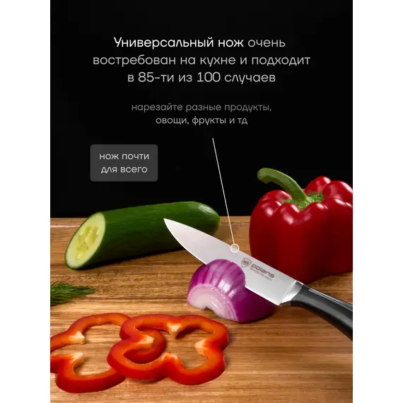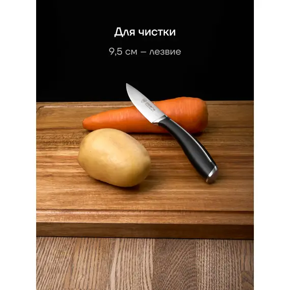 Поварской нож - лезвие 20 см., Нож кухонный универсальный – лезвие 12,5 см, Овощной нож для чистки и нарезки овощей и фруктов – лезвие 9 см