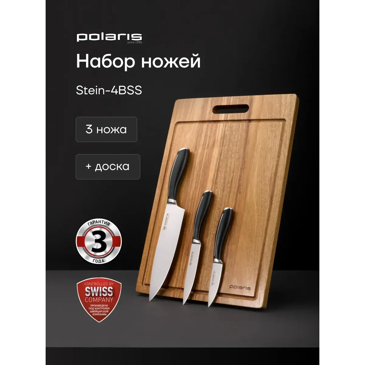 Набор ножей Polaris Stein - 4BSS с разделочной доской - это выбор для истинного повара и любителя кулинарии. В нем вы найдете все необходимые ножи для различных задач на кухне.