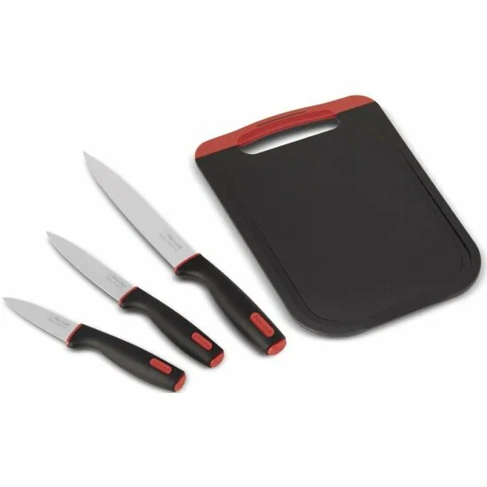 Нож разделочный 20,3 см -1 шт Нож универсальный 12,7 см-1 шт Нож для овощей 9 см -1 шт Доска разделочная -1 шт