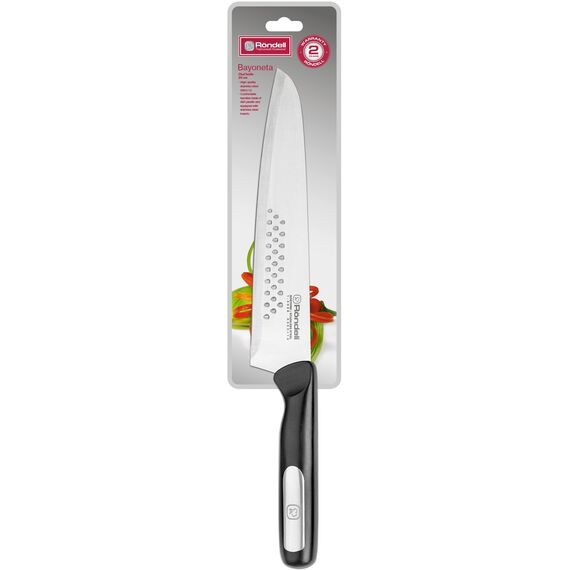 Нож кухонный Rondell Bayoneta RD-1570 стальной поварской лезв.200мм прямая заточка черный блистер