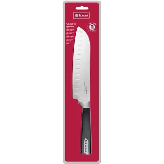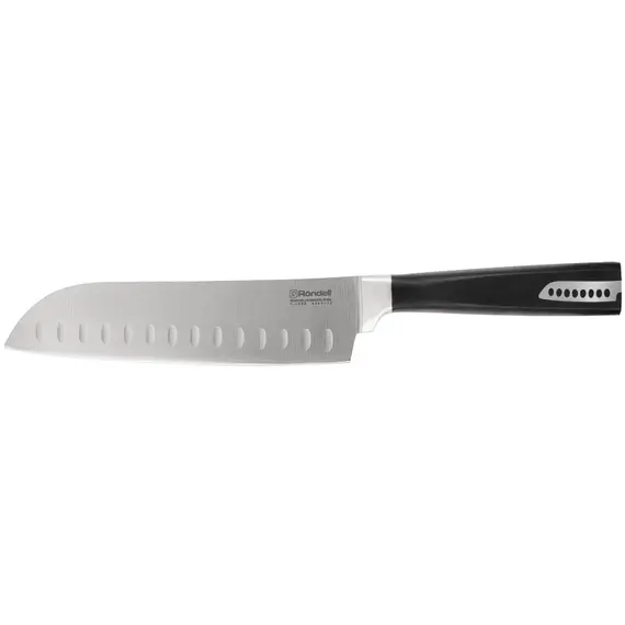 Нож кухонный Rondell Cascara RD-687 стальной сантоку лезв.178мм прямая заточка черный блистер