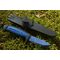 Особенности нержавеющая сталь с твердостью 56-58 HRC; рукоятка из прорезиненного пластика черного цвета с вставкой синего цвета; длина ножа – 206 мм, длина лезвия – 91 мм. толщина лезвия в обухе – 2 мм; вес – 115 грамм.
