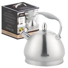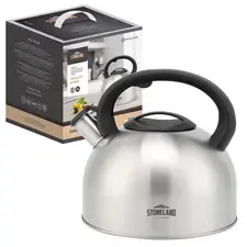 Чайник из нержавеющей стали со свистком STONELAND SWK-0102 Общий объем 2,7 литра, высококачественная нержавеющая сталь 5-ти слойное капсульное дно, Стальной носик, удобная ненагревающаяся ручка soft touch Подходит для всех типов плит.