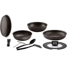 Набор посуды для приготовления со съемной ручкой. В состав набора входят кастрюля 26 см с крышкой, сковорода 26 см и ковш 18 см с крышкой со съемной ручкой. Набор подходит для всех типов плит, включая индукционные. Внутреннее покрытие Xylan защищает посуду от прилипания пищи при быстром...