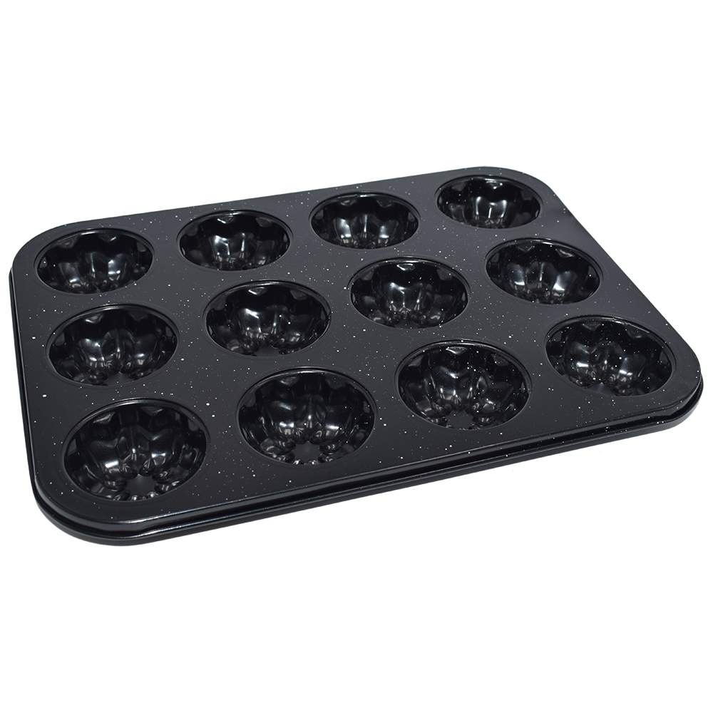 Форма для выпечки кекса Zeidan Z-1283 размер формы 36х26 см, размер кексов 5х3 см. Материал высококачественная углеродистая сталь. Углеродистая сталь это экологически чистый, долговечный материал, который чрезвычайно устойчив к коррозии и надолго сохраняющий свои функциональные свойства. Углеродистая сталь устойчива к высоким температурам и не теряет своих свойств при нагреве до 250 градусов. Внутреннее и внешнее антипригарное каменное покрытие GRANITE, препятствует пригоранию и обеспечивает легкую чистку изделия.