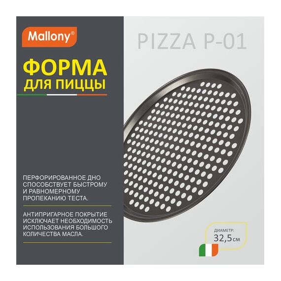 Дополнительные характеристики формы для пиццы Mallony PIZZA P-01 диам 32.5 см 008571:
