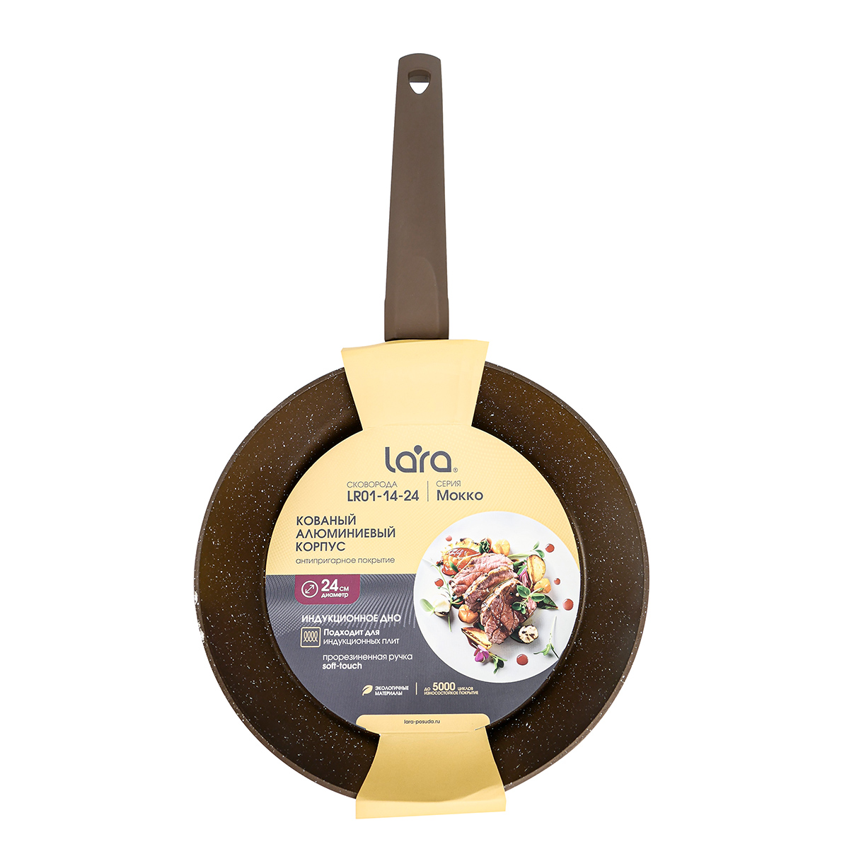 Сковорода LARA серии «Мокко» – это удивительное сочетание превосходного качества и внешней элегантности. При производстве использовались экологичные материалы. Корпус выполнен из кованого алюминия и имеет отличные теплопроводные свойства.