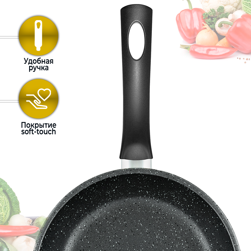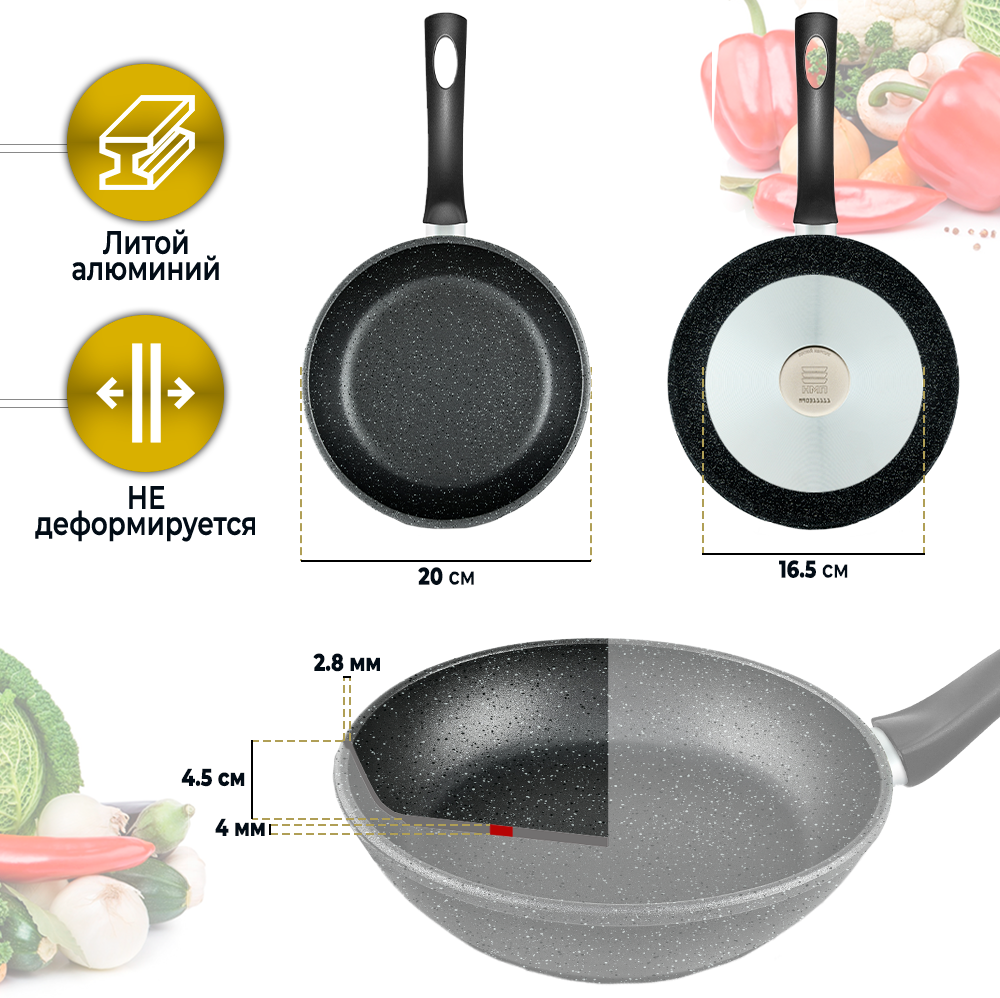 Сковорода 20 см Нева Металл Посуда коллекции "Готовить легко" серии Stone GL2120у для ежедневного использования с антипригарным покрытием в современном и практичном цвете с оттенком натурального камня. Это идеальная маленькая сковорода для приготовления небольших порций еды.