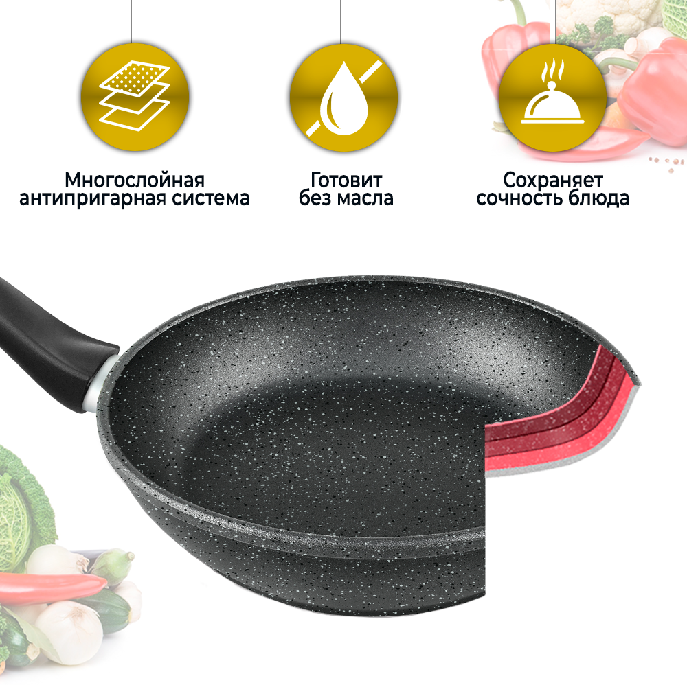 Универсальная форма корпуса и качественное антипригарное покрытие делают ее незаменимой помощницей на кухне. Готовьте любые разнообразные блюда от омлета и оладий, до паэльи и жаркого.