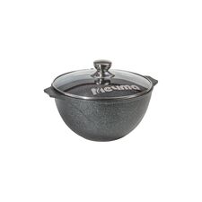 Серия- Мрамор Материал - литой алюминий, материал крышки - стеклок Объем- 2,2 л. Диаметр - 24 см. Покрытие - антипригарное покрытие Толщина дна - 6мм, толщина стенок - 4 мм Крышка с силиконовым ободком и ручкой Отверстие для выхода пара на крышке Источник тепла - все виды плит, кроме...