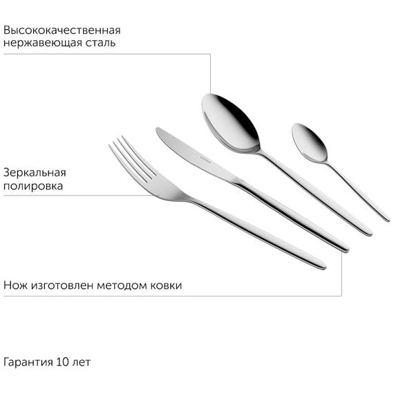 столовая ложка 4 шт, чайная ложка 4 шт, вилка 4 шт, столовый нож 4 шт