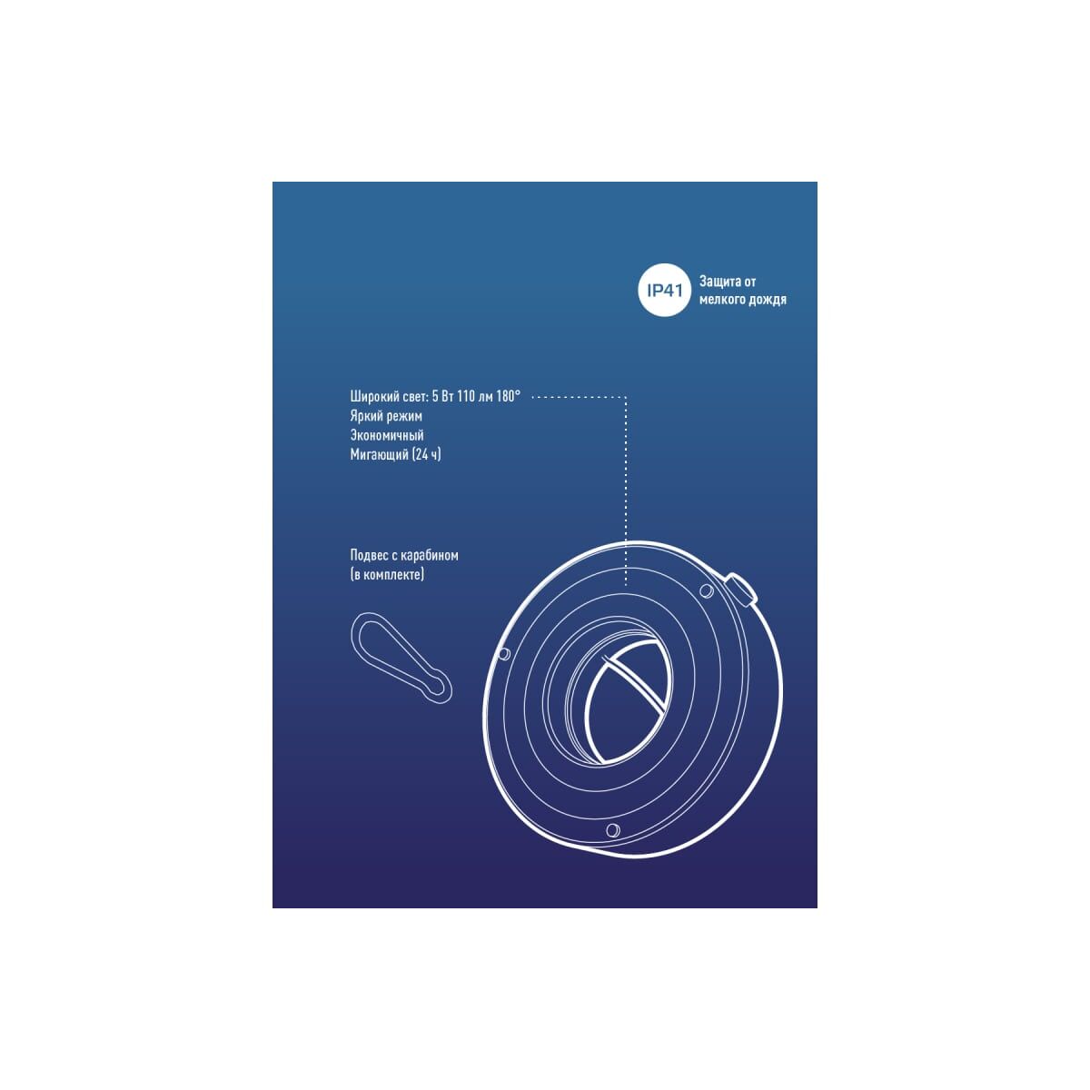 -Мощный широкий свет 5Вт - освещает пространство 14м2.
