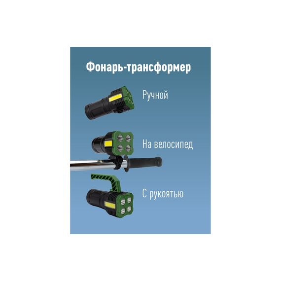 Фонарь прожектор ручной КОСМОС (KOC902Lit) - внешний вид в стиле хай-тек не только похож на популярных роботов-трансформеров, сам фонарь им и является. Светит 4-мя светодиодами, для получения мягкого фокусного пятна луча. Переключив режим, вы получаете светильник широкого света, который удобно носить в руке, как факел, или поставить на поверхность. Также в комплекте есть верхняя ручка для длительных прогулок и крепление на руль велосипеда. Процент заряда батареи отображается на умном индикаторе.